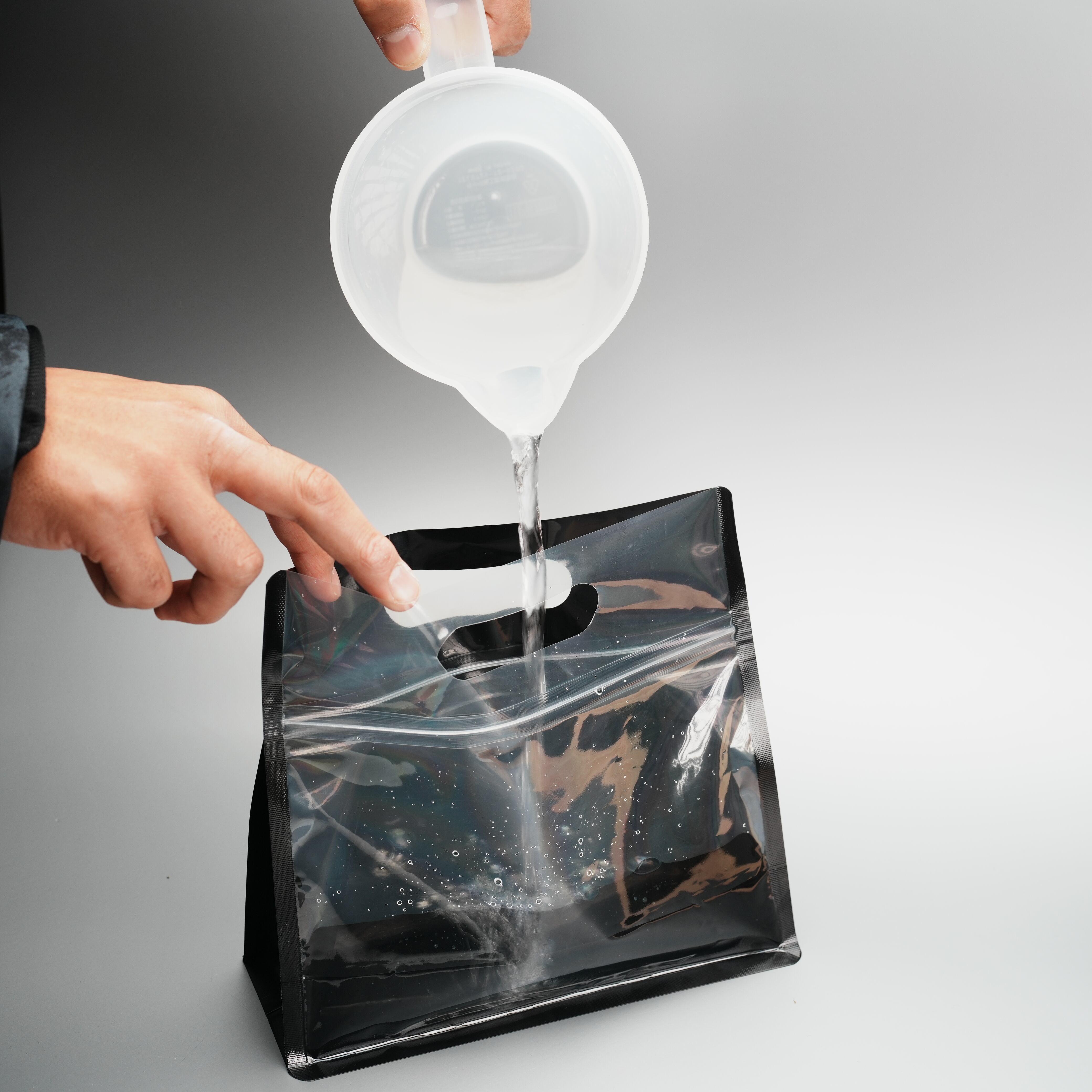 10枚セットです(注:金魚は含みません) メダカをはじめとする小魚や熱帯魚等を展示や持ち帰り用に使用するための袋です。 引越し時の魚の移動袋、また友人への魚のプレゼント袋としてご利用出来ます。 袋のサイズ(外寸)縦18cm×横21.5cm×奥行9cm チャック下(内寸)縦12cm×横21.5cm×奥行9cm 袋の正面は透明、側面・背面・底面はマットブラックで構成されており、保護色による体色の抜けを防止、本来魚自身が持つ体色を最大限に引き出す事が可能です。 イベント等でメダカ展示袋を利用すれば売上向上に繋がります。 《注意事項》 この袋は主にメダカ用の展示、持ち帰り用の袋です。 そのため発送等の酸素を入れての揺れや衝撃が多く生じる長距離輸送には適しておりません。 また、フタを閉めた状態でも逆さを向けたり、横を向けたりすると水漏れの原因となりますので立てた状態でご使用ください。